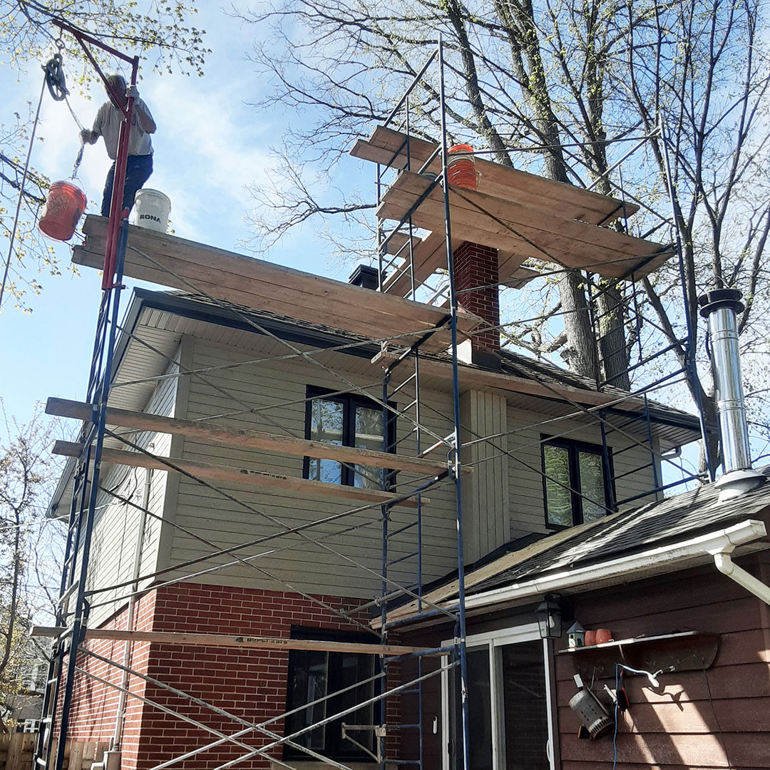 L'équipe de Marc Maçonnerie Restauration se spécialise dans la restauration de votre cheminée. Expert en échafaudage, Marc arrive à rejoindre les cheminées les plus hautes sur les toits les plus complexes. Il reconditionne votre brique, agence les pièces manquantes, réplique les motifs existants et fait le rejointement. Il construit les fondations de blocs, change les allèges sous les fenêtres ou rajeunit le crépit qui protège votre fondation.